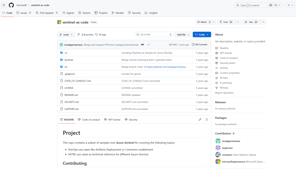 Microsoft GitHub repository https://github.com/microsoft/sentinel-as-code