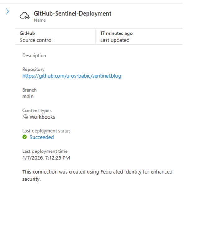By integrating automation and security best practices, teams can manage Microsoft Sentinel resources with confidence, achieving speed, consistency, and transparency—all triggered by a single push to the repository.