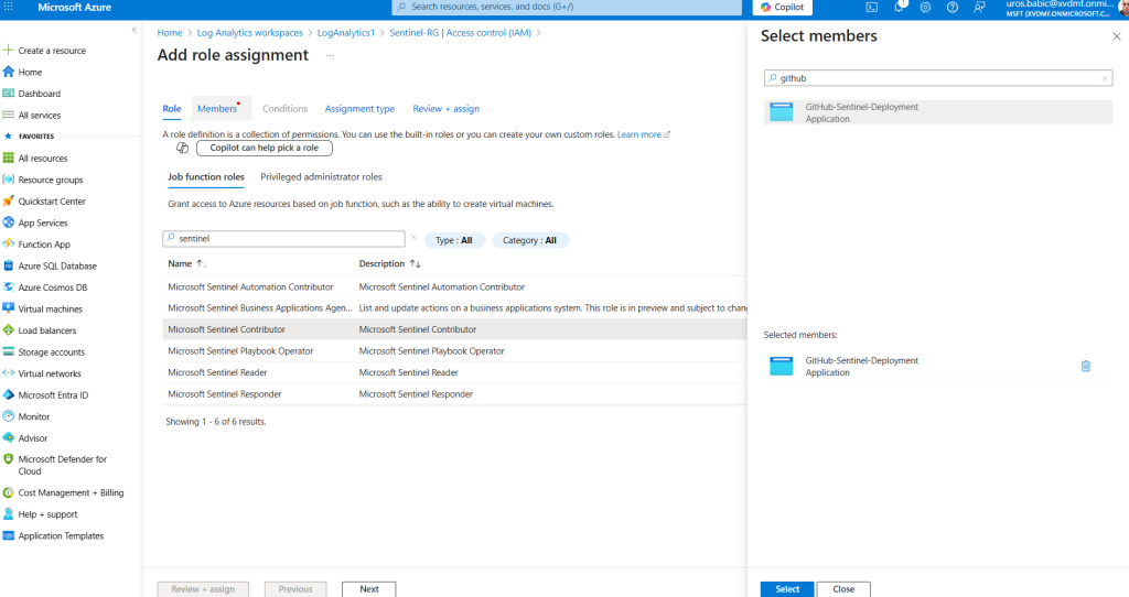 4. Provide a meaningful name like “GitHub-Sentinel-Deployment”