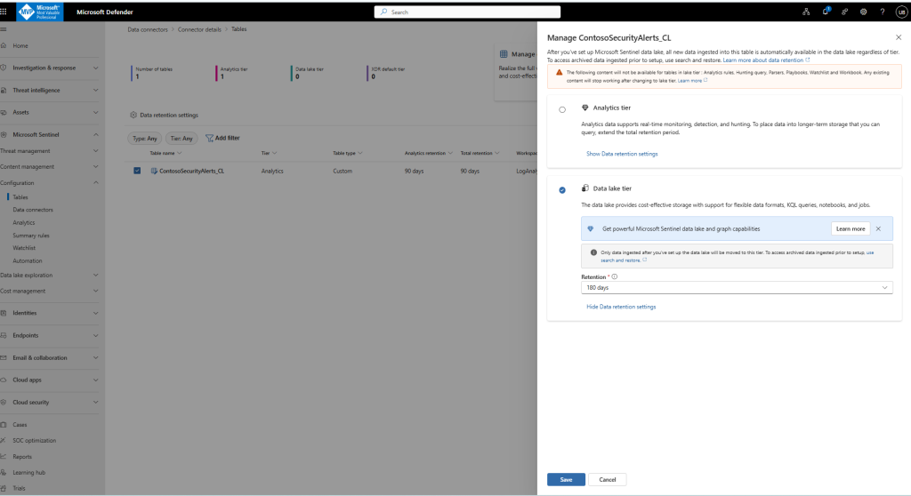 After you’ve set up Microsoft Sentinel data lake, all new data ingested into this table is automatically available in the data lake regardless of tier. To access archived data ingested prior to setup, use search and restore.