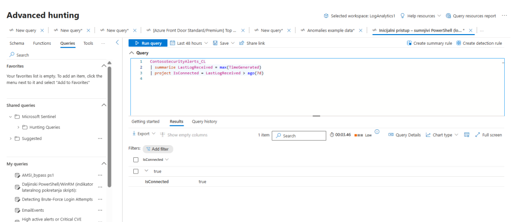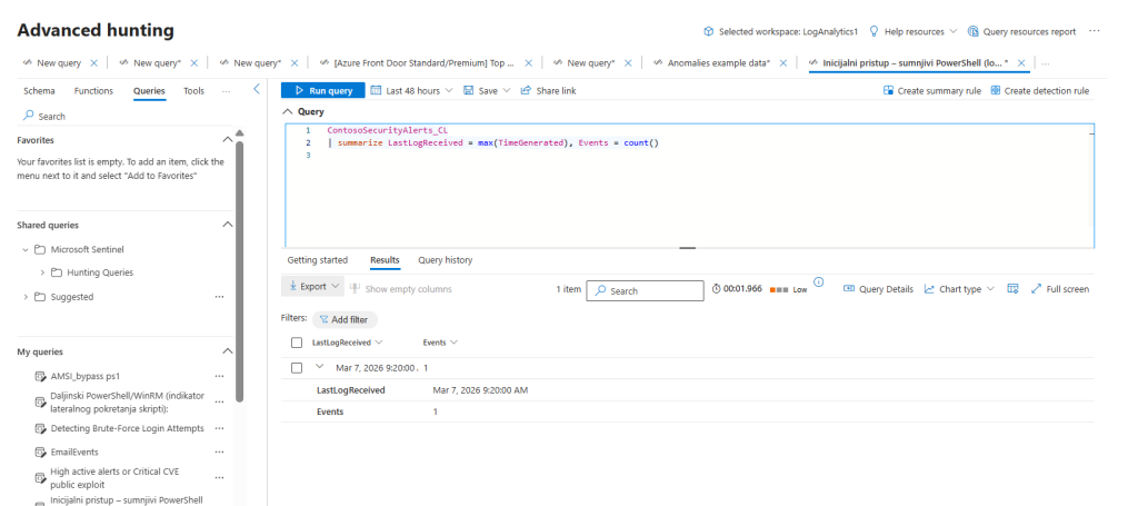 - Data plane: KQL confirms records are present and