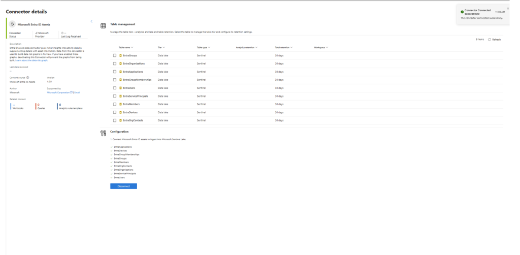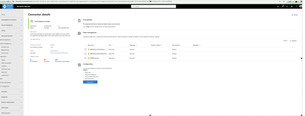 We installed and enabled the following two connectors as mandatory prerequisites for Sentinel Graph.