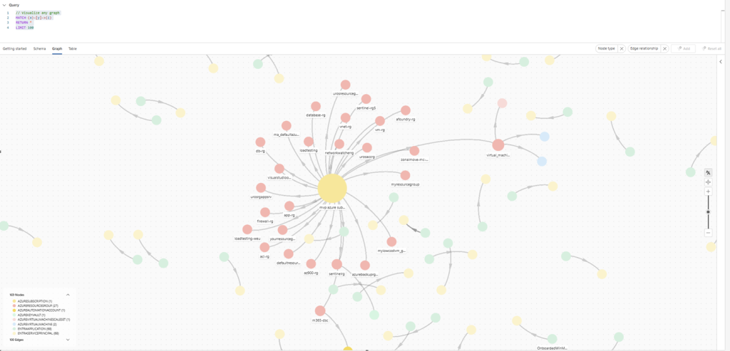 Before writing custom KQL graph queries or interpreting visualisations, it is important to understand the graph schema. The schema defines which node types and relationship types exist, and how different entities in the environment are connected.